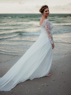 Wedding Dresses for Bride 2025 with Lace Appliques Chiffon A Line Women Dress Long Sleeves Beach Bride Dress