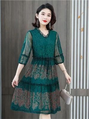 Women’s Plus Size Floral Mesh Midi Dress Slimming Wedding Guest Party Dresses