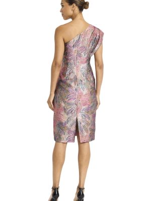 Women’s One Shoulder Metallic Jacquard Evening Fitted Special Occasion Cocktail Dress