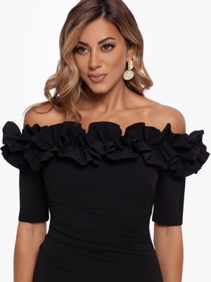 Women’s Off The Shoulder Ruffle Sleeve Midi Dress (Standard & Petite)