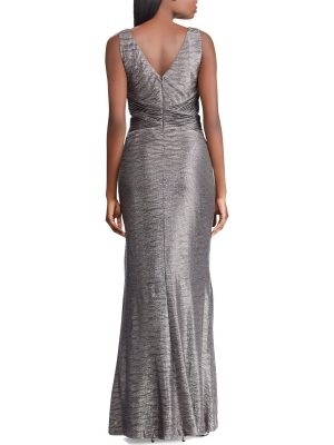 Womens Dilamana Gathered Sleeveless Evening Dress Gray 6