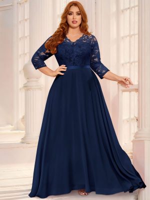 Women’s Formal Floral Lace V Neck Plus Size Bridesmaid Party Maxi Dress