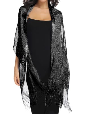 Elerevyo Women Sequin Shawls and Wraps for Evening Dresses, Fringed Sparkly Dressy Scarf for Wedding Party