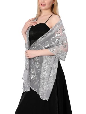 Sequin Lace Shawl Wrap, Evening Formal Sheer Shawls for Women Dressy Cover Up, Girls Wraps and Shawls