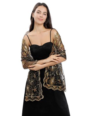 Sequin Floral Shawls and Wraps for Evening Dresses,Women sparkly Sheer Mesh Wedding Shawls for Evening Party