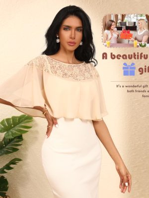 Chiffon Lace Shawl Wraps Women’s Girls Cape Shrug for Evening Dress Wedding Capelet Cover Up