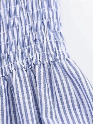 Women’s Hollow Out Embroidered Stripe Beach Vacation Dress One Line Collar Summer Casual Midi Dresses